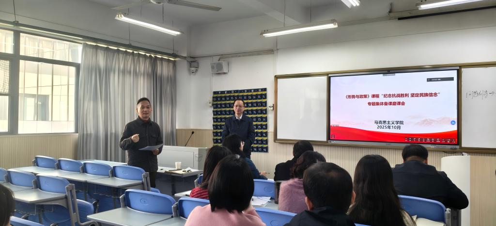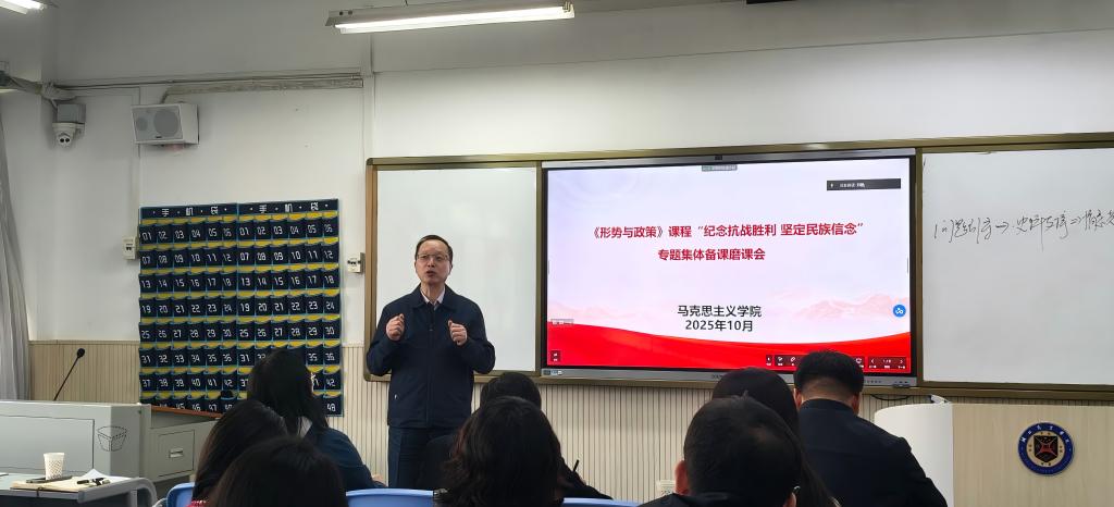 为进一步贯彻落实教育部高校思政课课堂教学提升行动要求,高质量完成本学期“形势与政策”课程教学工作,不断提升教学实效性,10月22日,马克思主义学院在武汉校区开展2025年秋季学期“形势与政策”课程集体备课磨课活动,咸宁校区云端同屏,线上同步进行。学校党委书记杨世雄,副校长胡柳、程胜军,教学督导胡家浩,马克思主义学院领导班子及专任教师、“形势与政策”专兼职教师齐聚一堂,共研一门思政课。
