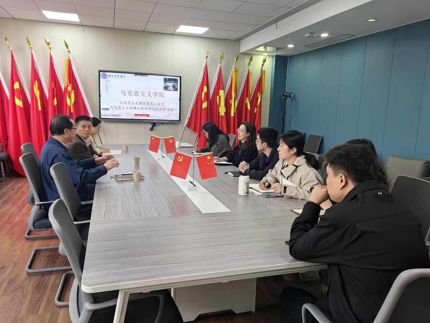 为夯实教师理论功底,提升经典文献研学能力,3月30日下午4:30,马克思主义学院2026年第二场“马克思主义理论底色工程”活动在六楼会议室举行。本次活动特邀华北水利水电大学马克思主义理论二级教授、国家一流课程《马克思主义基本原理》团队带头人杨国斌作专题指导,学院教师代表线下线上参会。
