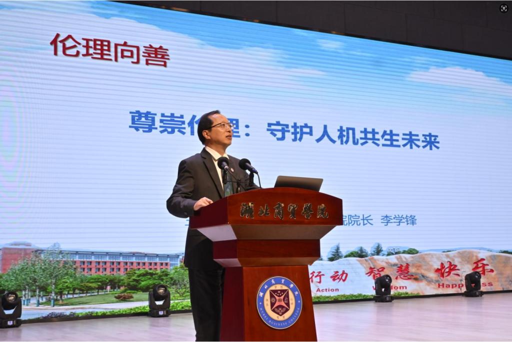马克思主义学院院长李学锋以《伦理向善:AI时代的人机共生与价值守护》为题发表演讲,坚守价值引领底线,探讨AI时代的伦理规范与青年责任。