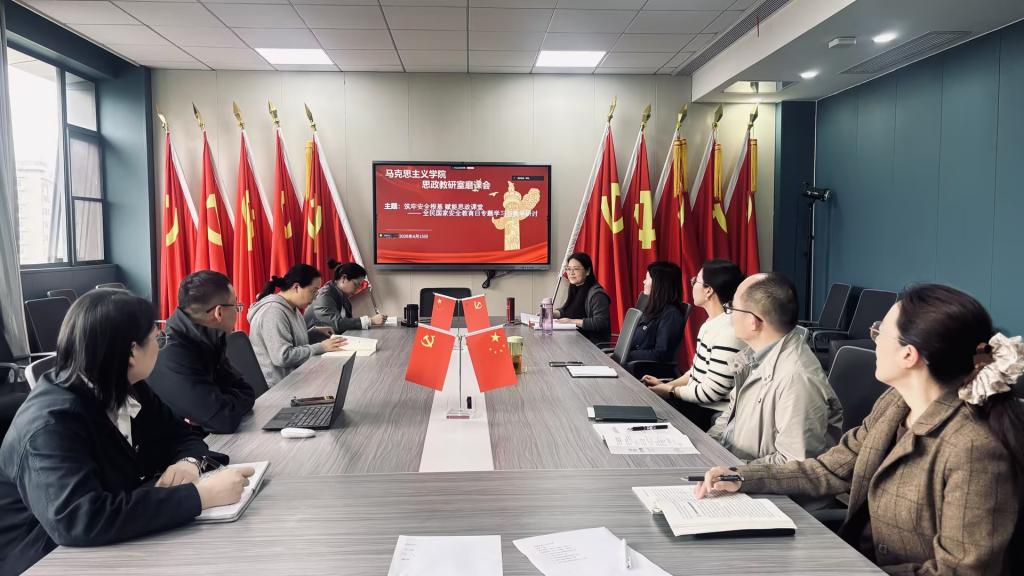 为深入学习贯彻总体国家安全观,扎实推进国家安全教育进教材、进课堂、进头脑,推动思政课与国家安全课程协同育人,4月15日下午,马克思主义学院思政教研室以“筑牢安全根基 赋能思政课堂”为主题,组织思政教研室教师与国家安全专题课教师开展全民国家安全教育日专题学习与教学研讨活动。马克思主义学院副院长刘艳出席并作总结讲话,活动由思政教研室主任陈先主持。